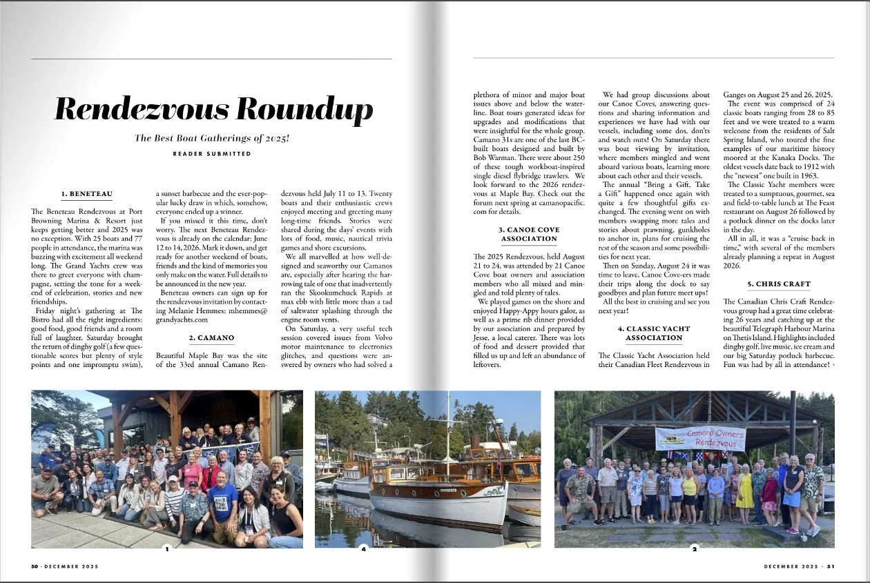 We look forward to the 2026 Rendezvous at Maple Bay - check out the forum next spring at camanopacific.com for details. We hope new cruisers can join us!”